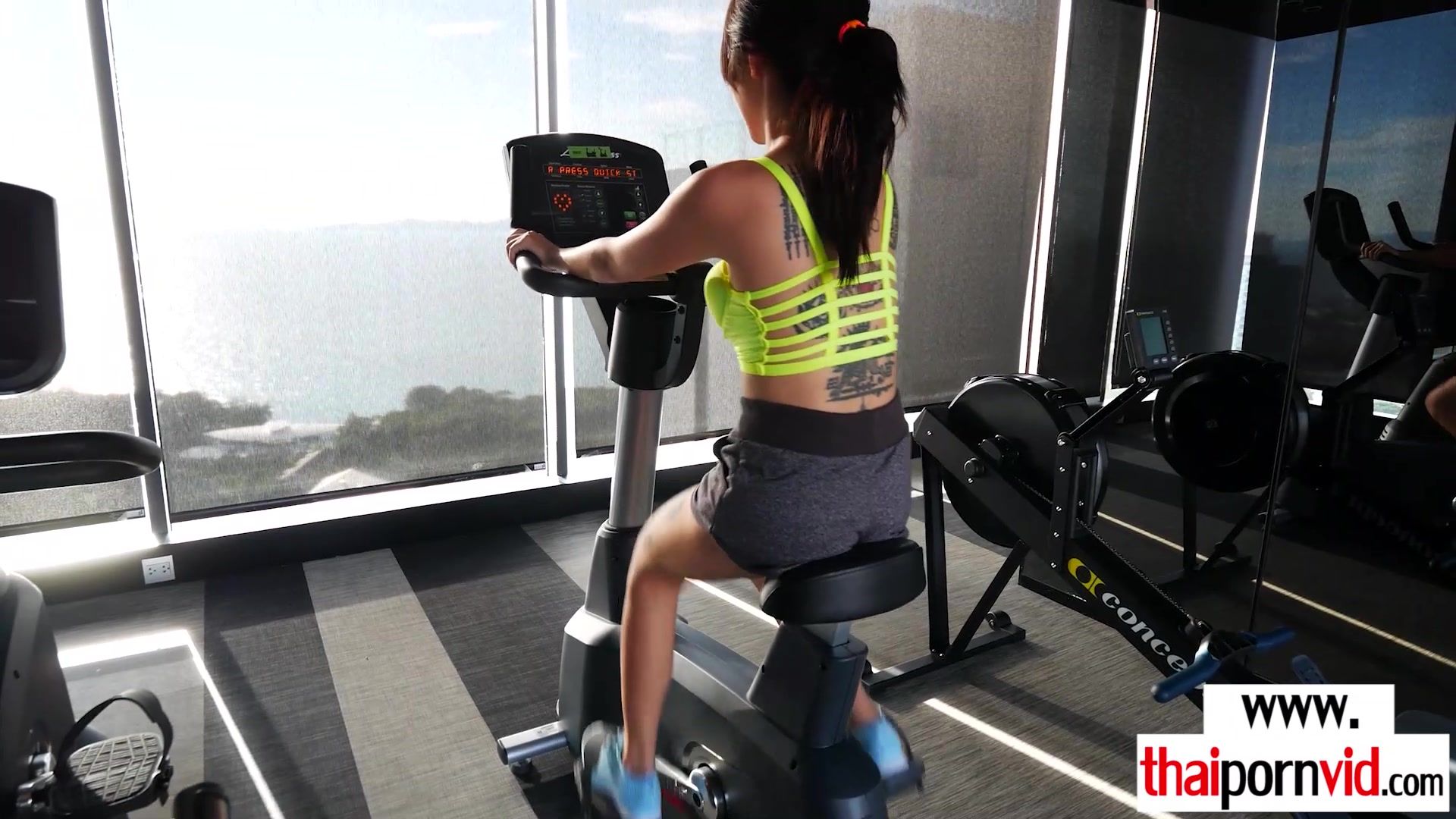 Sexy amateur Thai teen Noomai with tiny tits doing her daily workout on a yoga ball then she takes her european lovers big white cock to empty his saturated balls and get his seeds so she starts sucking the dick then offers her asian pussy for a fuck
