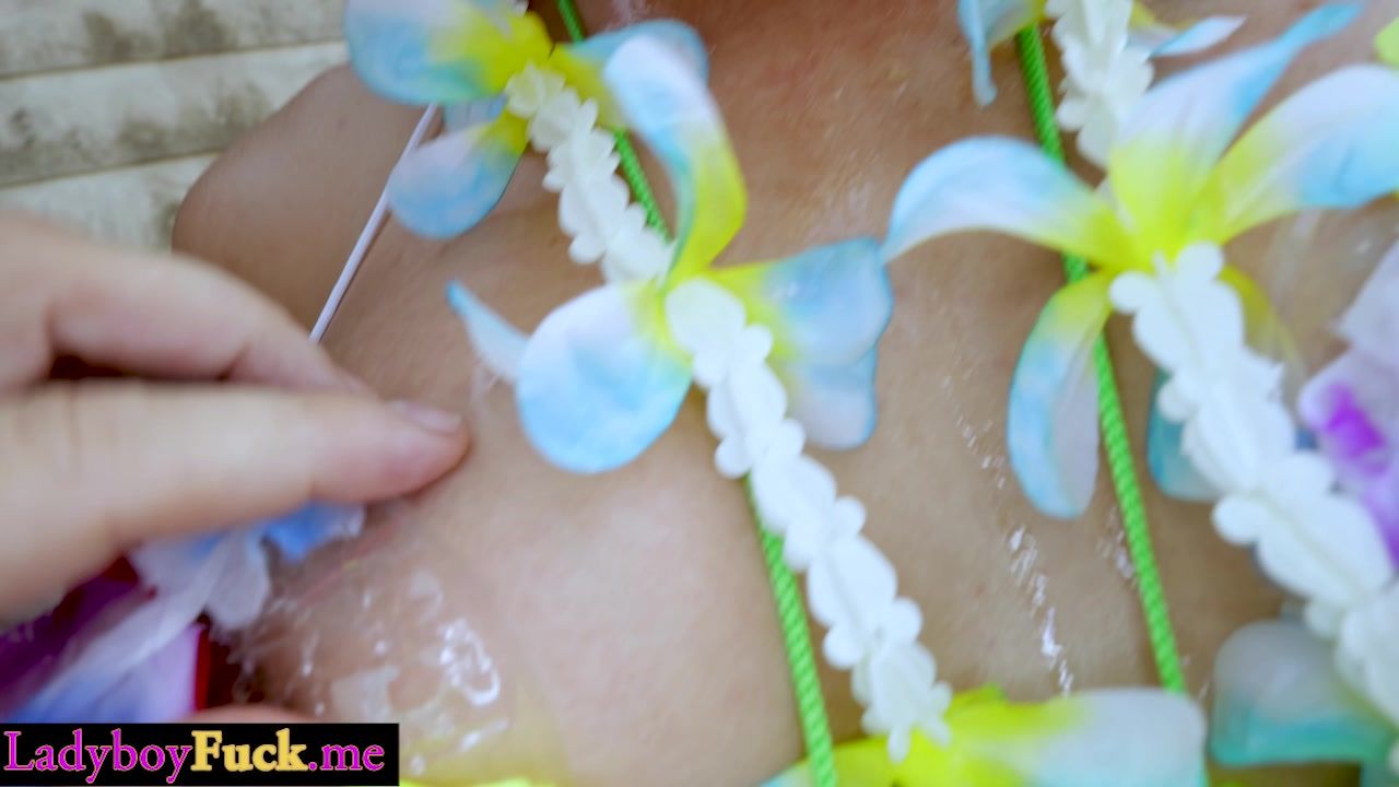 Big ass Asian ladyboy Spoy enjoys bareback anal sex after posing and blowjob for big dick white tourist Thai big cock ladyboy posed and masturbated After solo play and cock sucking shemale enjoyed deep ass fucking